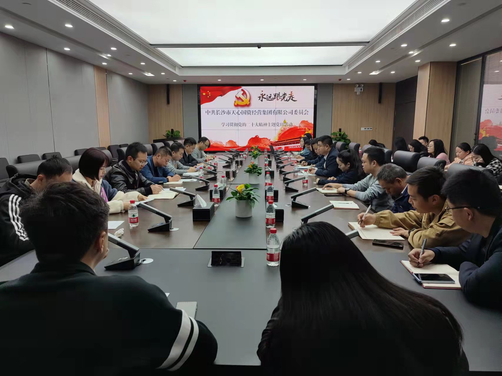 2022年11月19日上午,天心國資集團開展學習貫徹黨的二十大精神主題黨日活動。會議由支部書記謝岳主持,集團領(lǐng)導班子成員、全體黨員、積極分子40余人參加會議。